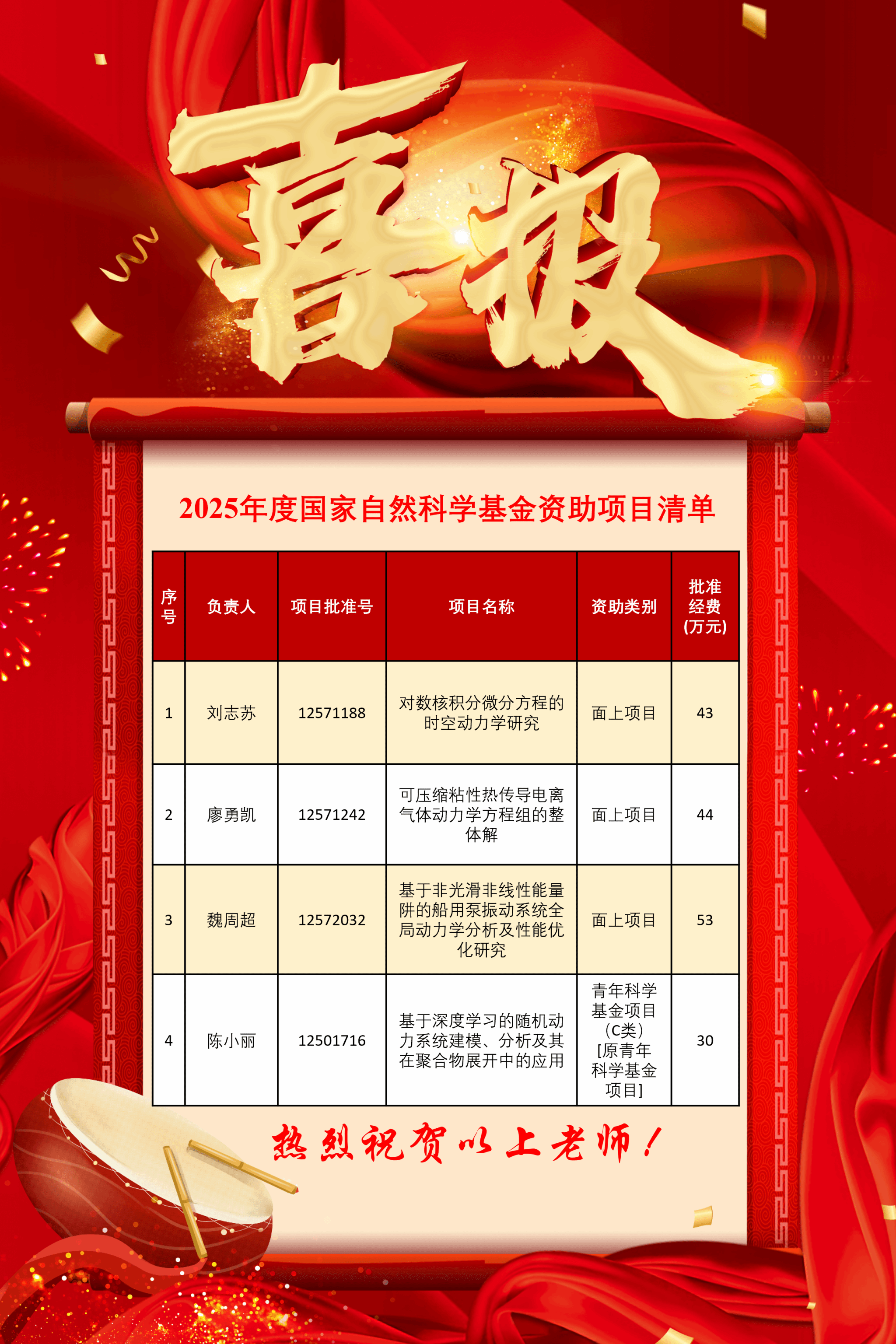 在国家自然科学基金申报工作中,公司充分发挥组织引领作用,扎实推进申报工作,科学谋划申报布局,组织多轮专家辅导会、经验分享会,实施精细化服务保障,为教师申报提供全过程支持。未来,公司将进一步完善科研激励机制,重点支持原创性研究,加强学科交叉融合,为科研人员创造更优质的工作环境,持续推动数学和物理学科的高质量发展。