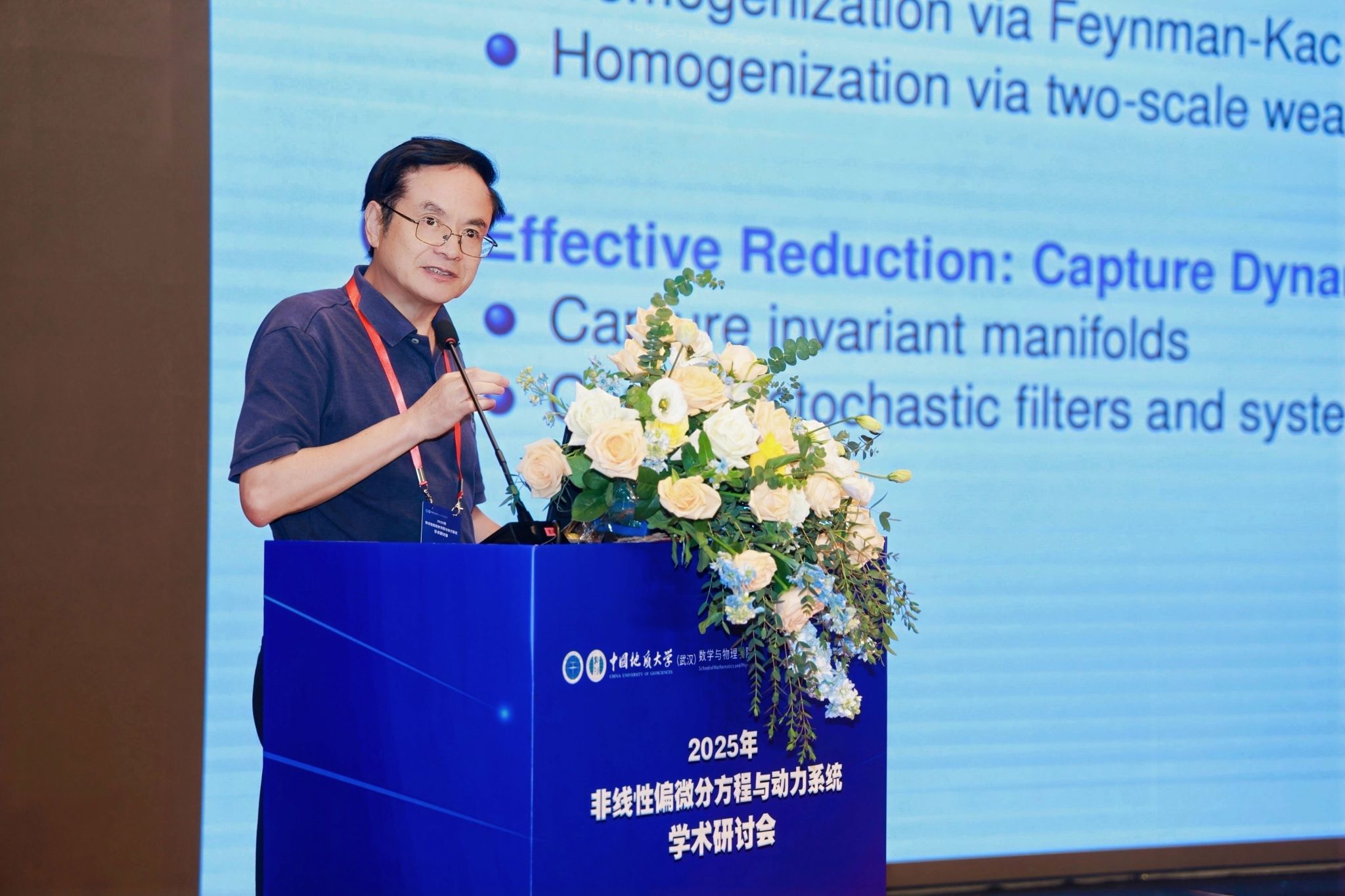 为期两天的学术研讨环节采用 “主旨报告+分会场报告”形式,内容丰富且兼具深度与广度。郭岩教授(美国布朗大学)、林治武教授(复旦大学)、江宁教授(武汉大学)、刘双乾教授(华中师范大学)、段金桥教授(大湾区大学)等近30 位专家学者先后登台,围绕非线性偏微分方程与动力系统中的前沿热点问题分享最新研究成果,现场学术氛围浓厚,思想交锋频繁。本次研讨会不仅聚焦理论突破,更注重成果应用与学科交叉。报告中既有对偏微分方程解的存在性、正则性等基础理论的深入探究,也包含对传染病模型、海洋流动模型等实际问题的数学刻画,充分体现了数学学科在解决现实复杂问题中的重要支撑作用。来自国内外高校的青年学者积极参与提问交流,为学术传承与创新注入青春活力。本次会议的组织工作严谨高效,参会专家学者纷纷表示,会议为国内外微分方程领域研究者搭建了高效的交流合作桥梁,不仅分享了前沿学术成果,更启迪了新的研究思路,对推动非线性偏微分方程与动力系统领域的发展具有重要意义。
