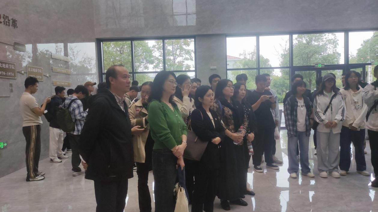 下午2:30,教师党员和员工步入地大校史馆,仿佛踏入了一条波澜壮阔的历史长河。在讲解员的引导下,师生们依次参观了“开创基业”、“曲折发展”、“焕发青春”、“跨越发展”等主题展区。一幅幅泛黄的老照片、一件件珍贵的实物、一份份详实的史料,生动再现了地大从北京建校、辗转办学、扎根到武汉、蓬勃发展的奋斗历程,地大人的命运始终与祖国的需要紧密相连。老一辈地质工作者“以献身地质事业为荣、以艰苦奋斗为荣、以找矿立功为荣”的精神,让在场的每一位师生深受触动。大家认识到,地大的历史,就是一部与国家同呼吸、共命运的奋斗史。