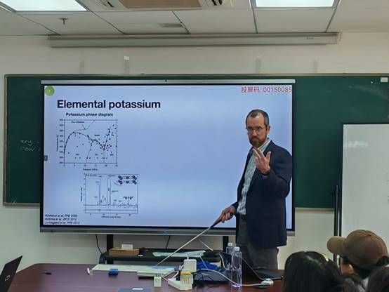 2025年12月2日下午, Andreas Hermann教授在东教楼1104学术报告厅为z6mg人生就是博部分物理学专业和材料与化工专业的博士生、硕士生和青年教师作了题为“From DFT to thermodynamic modelling”的学术报告。报告以近期关于“同时具备固体与液体特征的新物态”的报道为切入点,系统阐述他们研究团队在高压物理与计算材料学领域的系列工作。Andreas Hermann教授从钾的高压相图与非共格宿主—客体结构详细阐述了“链熔融”作为一种热力学中间态的证据与机制,提出了碱金属高压相可作为部分电子化合物的观点,展示了如何利用机器学习分子动力学模拟预测相变、熔化线极值及热力学性质,介绍了基于Bragg-Williams模型的两态热力学理论,解释了金属熔化线中的临界行为。此外,Andreas Hermann教授还介绍了第一性原理计算在高压冰(VII–VIII–X)相变研究中的应用,探讨了隐藏临界点与相图拓扑等前沿问题,展望了机器学习在预测复杂材料行为方面的潜力。报告期间,Andreas Hermann教授与在场师生就高压相变机理、机器学习势函数开发等相关问题展开了深入讨论并细致回答了师生提问。