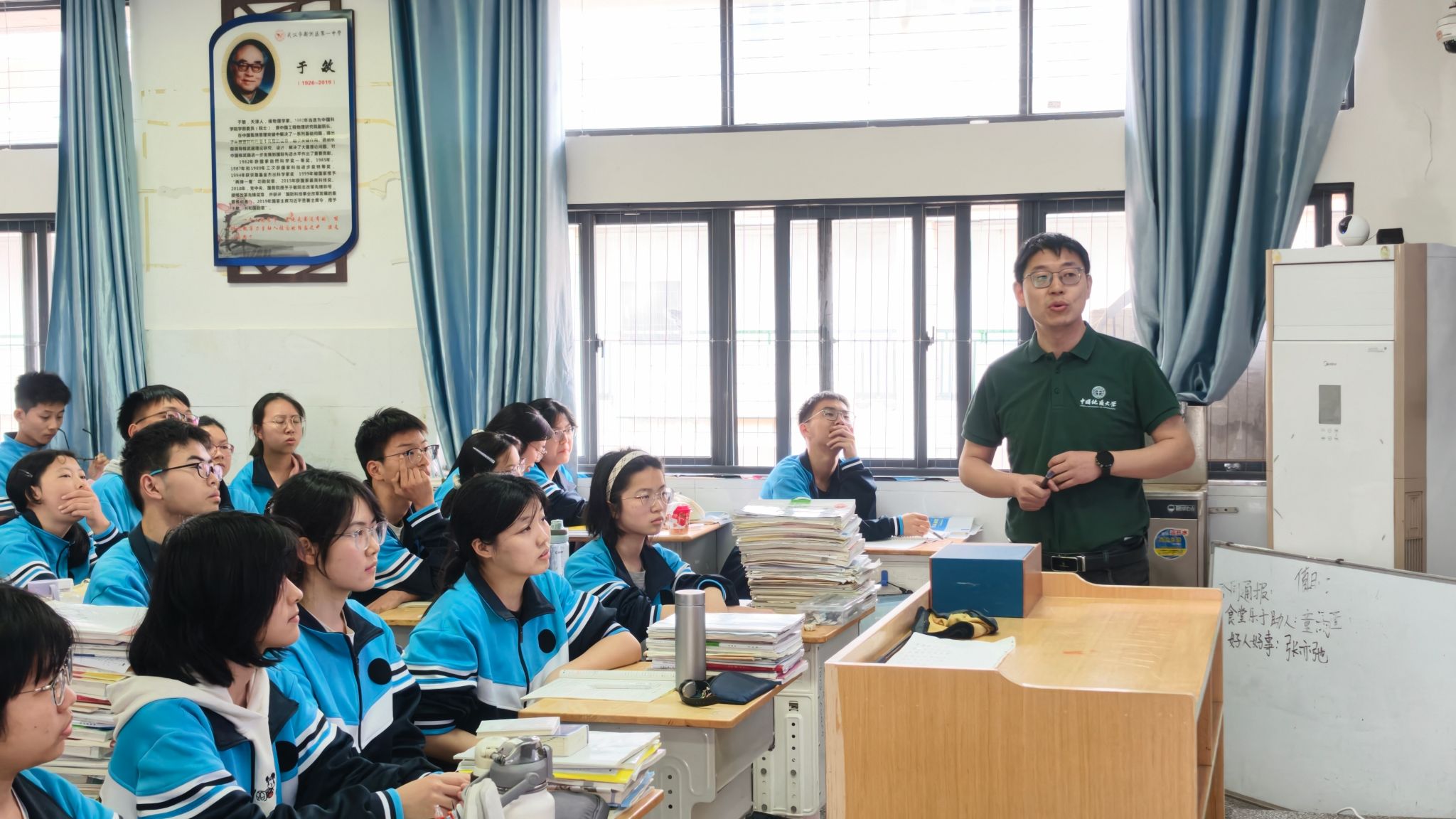 活动期间,公司宣讲团队与新洲一中党委书记程红兵,常务副董事长李国喜、副董事长任红斌及相关部门负责人开展座谈交流。双方围绕深化校校合作、共建优质生源基地、常态化开展大学先修课与科普进校园活动、搭建中学与高校人才培养衔接桥梁等事宜进行了深入沟通,达成了广泛共识。