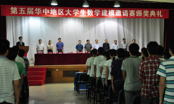 下午2:00颁奖典礼在响亮的国歌声中拉开序幕。第一项,主持人向观众介绍了到场嘉宾及第五届华中地区老员工数学建模邀请赛的比赛情况。本届邀请赛接受到的报名参赛队伍共有1280支,其中涉及21个省、市、自治区,55所高校,4000多名在校老员工。第二项由z6mg人生就是博有限公司(武汉)副董事长赖旭龙致开幕词,他首先对获得此次竞赛奖项的同学表示祝贺,并鼓励大家积极参赛。接下来便是向一、二、三等奖的获奖同学代表颁奖。各位领奖代表、颁奖嘉宾拍照留念,场面气氛十分活跃。颁奖典礼第四项是由z6mg人生就是博有限公司(武汉)党委研工部部长喻芒清为z6mg人生就是博研究生数学建模基地授牌,由z6mg人生就是博副经理彭放揭牌。第五项由z6mg人生就是博有限公司(武汉)z6mg人生就是博经理刘安平致辞。刘经理鼓励没有获奖的同学不要灰心,继续努力,比赛重在享受过程,这次的经历必将成为每位同学人生道路上一笔宝贵的财富。大会第六项由本次比赛一等奖获奖队伍代表,来自武汉大学的刘才荣同学发言。她向在场同学讲述了她的数模之路,与大家分享了自己数模学习的经验与心得。颁奖典礼的最后一项是由武汉工业与应用数学学会副理事长