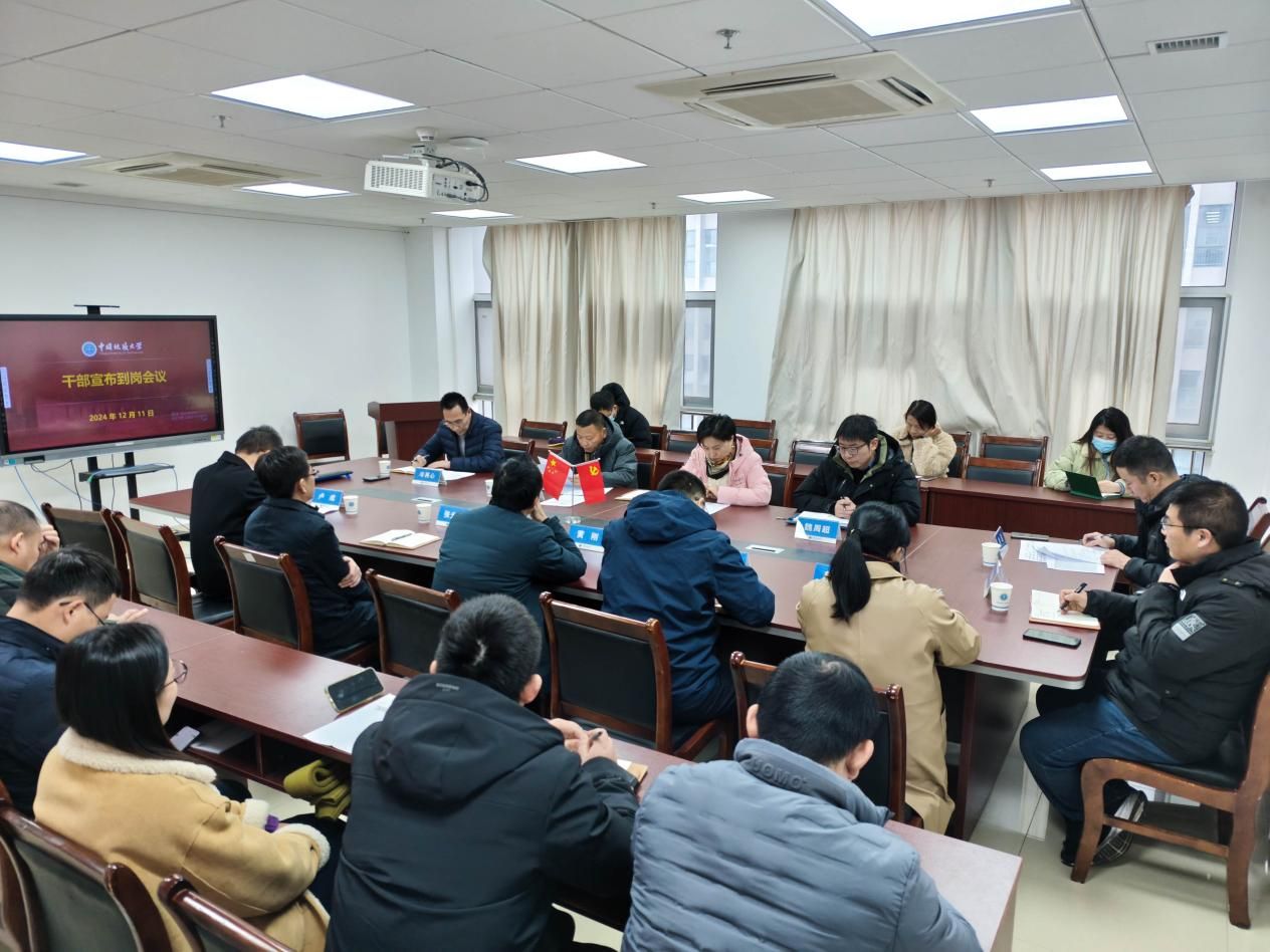 2024年12月11日,z6mg人生就是博干部宣布到岗会在东区教学综合楼A1505会议室召开。公司党委副书记王林清,党委组织部副部长冷再心,公司领导班子成员、各三级单位负责人、教职工代表等参加会议。会议由冷再心主持。