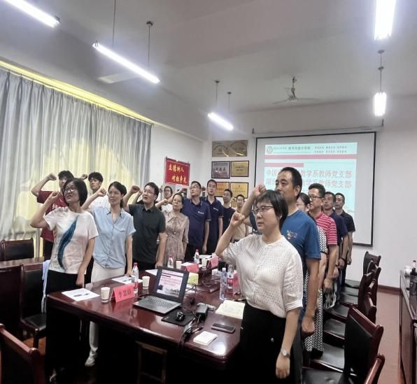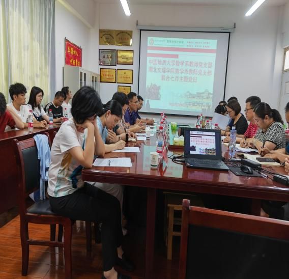 7月4日下午,数学系教师党支部与湖北文理公司数学与统计公司数学系教师党支部 N6-312会议室联合开展七月主题党日活动。在 “回顾初心、党性教育、民主议事、实践锻炼” 主基调下:全体同志奏唱国歌,在刘志苏书记领誓下重温入党誓词,缴纳七月份党费并开展相关政治理论学习。