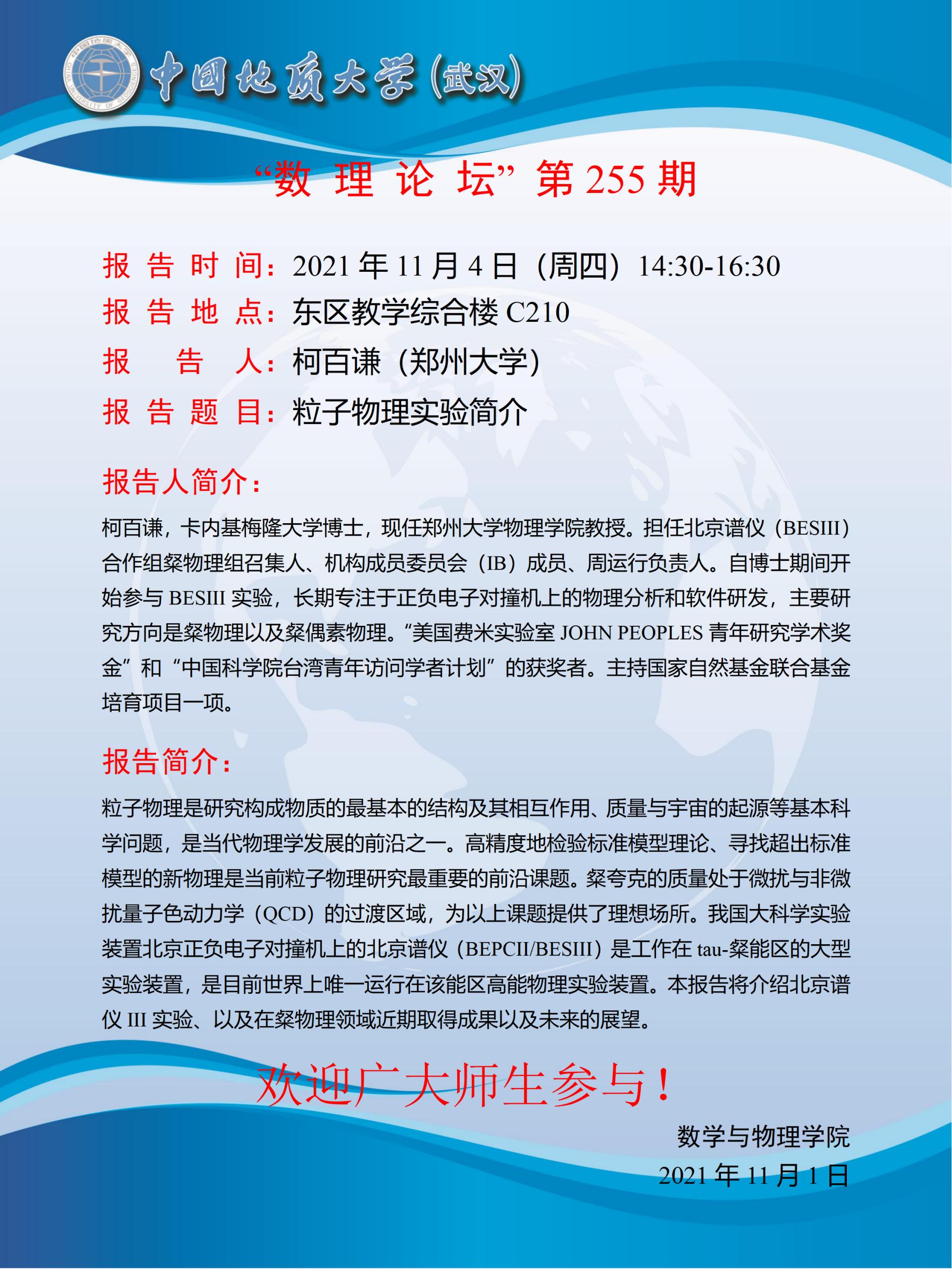 "数理论坛"第255期:粒子物理实验简介
