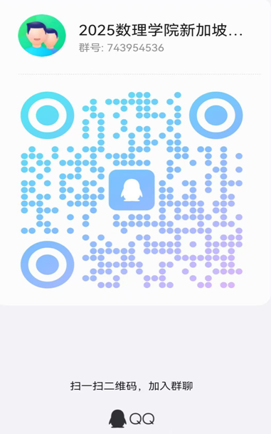 (2)请扫码申请加入“2025z6mg人生就是博新加坡暑假项目”新加坡暑期项目”(QQ群号:743954536)。入群需验证,请输入本人的“姓名-学号-公司”。