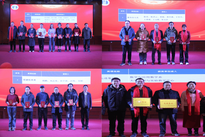 第二阶段,是以 “共话公司情,同启新征程” 为主题的年度表彰和茶话会活动。该阶段由王希成主持,旨在表彰2024年度在公司党建、教学、科研、服务育人、工会活动等方面表现突出的先进集体和优秀个人。公司特别为2024年光荣退休的罗中杰、汤型正、田木生、吴太山、奚先、杨瑞琰等六位老师举办了温馨的荣休仪式,书记、经理为他们颁发了“卓越成就奖”纪念奖杯,代表全院师生对六位荣休教师多年来倾心奉献、辛勤耕耘表达诚挚感谢。荣休教师代表吴太山老师发表感言,他对公司在学科专业建设上取得的突破性进展表示热烈祝贺,对公司给予荣休教师的关怀表达了深深感激,并深情承诺退休后仍将心系公司,持续关注和支持公司的发展。