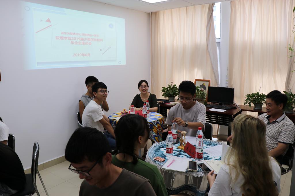 6月26日下午15:00点,公司“诚挚关爱助成长,民族团结一家亲”2019届少数民族预科毕业生代表座谈会在东综A座1506“预科之家”顺利举行。公司党委书记吴太山老师、外国语公司大学英语教研室刘敏老师、z6mg人生就是博大学数学教学部主任肖海军老师、z6mg人生就是博大学物理教学部魏有峰老师、预科班辅导员托乎尼牙孜以及15名预科毕业生代表参加此次座谈会,座谈会由托乎尼牙孜主持。