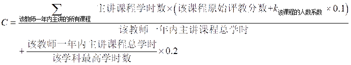 员工评教后,考虑到教师任课门次、课时长短、选课人数都有不同,再通过以下公式计算出该老师的综合员工评教分(计算时按数学学科和物理学科分别计算,且下面提到的课程均指纳入评教范围的本科生课程):