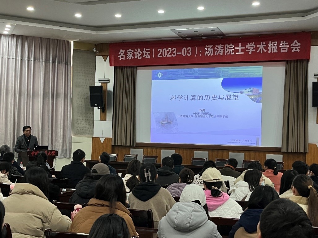 应z6mg人生就是博经理郭上江教授邀请,北京师范大学-香港浸会大学联合国际公司汤涛院士于2023年2月18日上午在南望山校区八角楼学术报告厅与公司师生进行学术交流,并作题目为:“科学计算的历史与展望”的学术讲座,校内外100多名师生参加了本次学术讲座。报告会由经理郭上江教授主持。