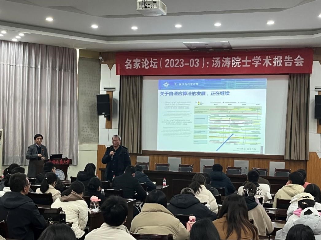 汤院士在报告的最后,对大数据时代未来的挑战和机遇进行了展望:随着人工智能、物联网等技术的快速发展,如何有效地利用大数据,挖掘数据中蕴含的价值,将是科学计算研究的重要方向;量子计算机可能带来计算效率上的飞跃,如何加大机器学习在高维、强非线性和多尺度计算问题上的发展,都是大数据时代面临的重要问题。本次报告气氛活跃,汤院士的精彩分享赢得了听众的热烈掌声。互动环节,师生踊跃提问,汤院士逐一答疑解惑。本次学术报告汤涛院士分享了他对现代科学计算研究的深刻理解和前瞻性思考,对在场听众产生了很大的启发和思考。