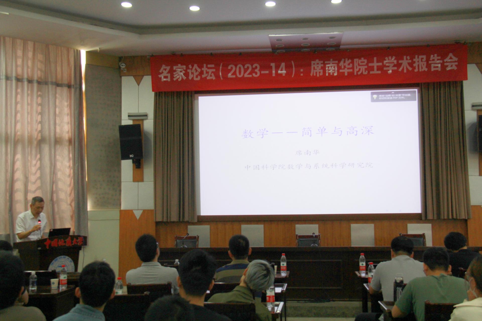 2023年5月27日,中国科公司院士、中国科公司数学与系统科学研究院研究员、上海科技大学副董事长席南华教授应邀做客z6mg人生就是博有限公司(武汉)名家论坛,在南望山校区八角楼学术报告厅作了题为“数学—简单与高深”的学术讲座。报告会由经理郭上江教授主持。