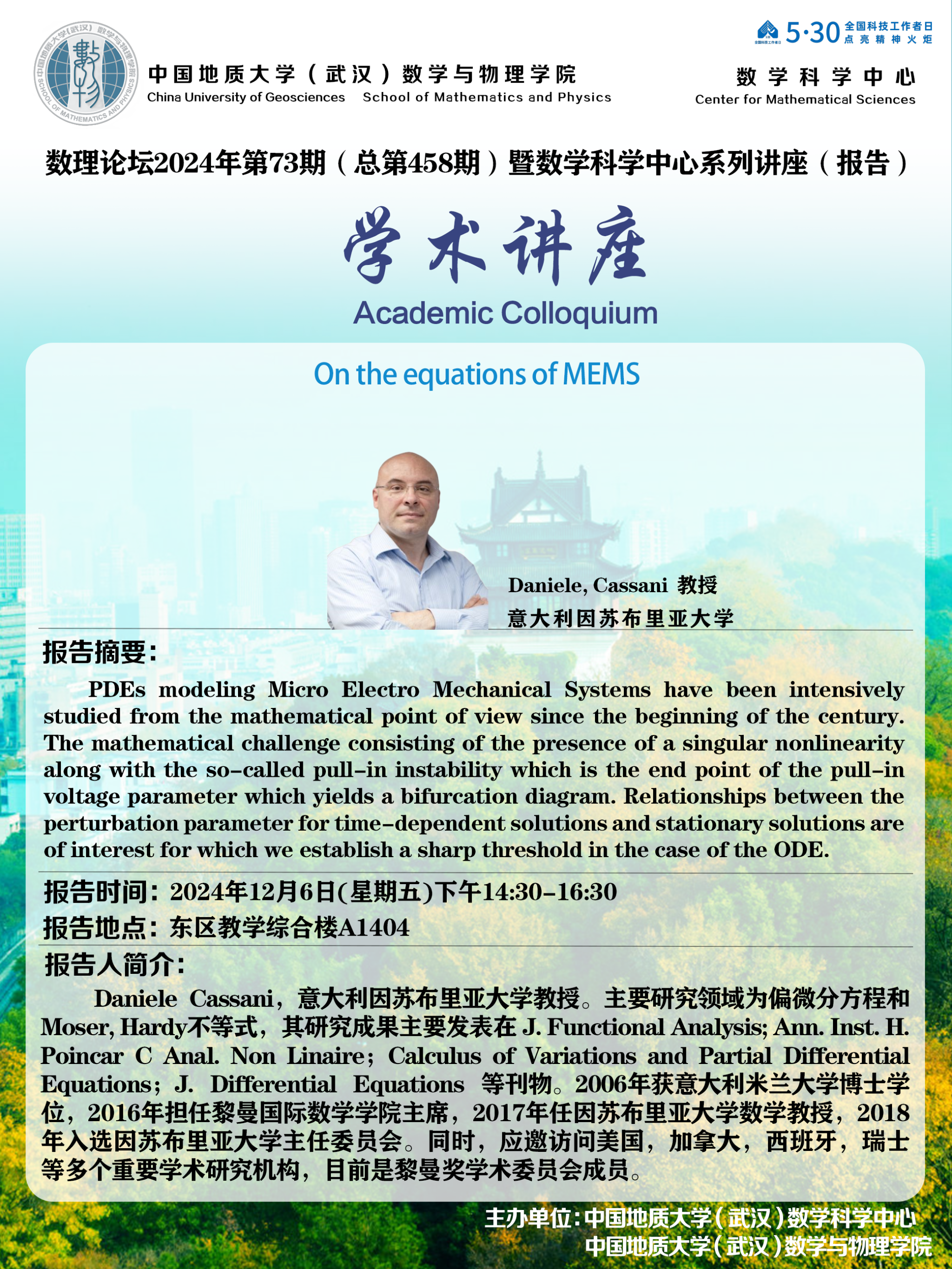 2024年12月6日Daniele,Cassani教授学术讲座:On the equations of MEMS